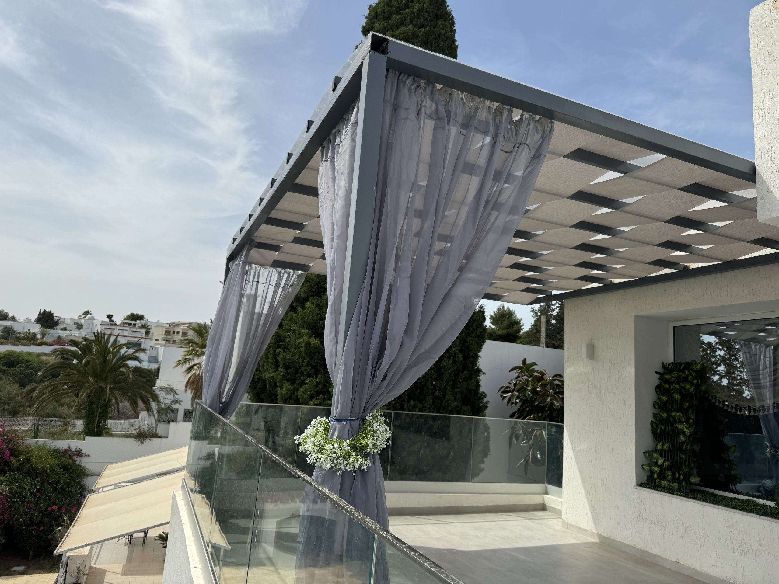 Fabriquées dans notre atelier à Sfax, nos pergolas métalliques allient qualité structurelle et esthétique architecturale. Nous utilisons des matériaux haut de gamme et des procédés de finition qui garantissent une tenue parfaite face à l’humidité, au vent et au soleil.